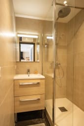 This 28m² studio, perfect for 4 guests, is cleverly laid out as a single open space. The living area features two comfortable sofa beds (140 cm), a fully equipped kitchen, and convenient storage. The south-east facing balcony offers a beautiful view of the slopes and plenty of morning sunshine—ideal for enjoying a coffee while admiring the scenery.
