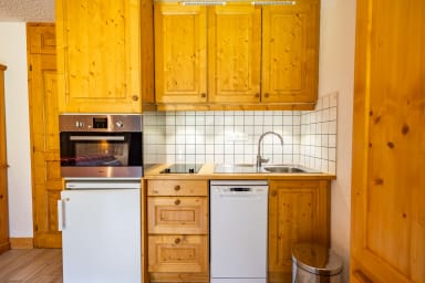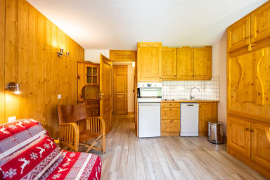 Charming 25m² apartment for 4 guests, ideally located on the ground floor of the secure Gébroulaz residence in Méribel-Mottaret. South-facing and bright, it features a living room with sofa bed, a bedroom with bunk beds, a fully equipped kitchen, and WiFi. Cleaning and bed linen included. Just opposite the ESF meeting point and 20 m from shops.